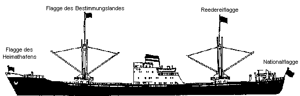 oder Hausflagge gefahren. Bei Segelschiffen kann hier auch der