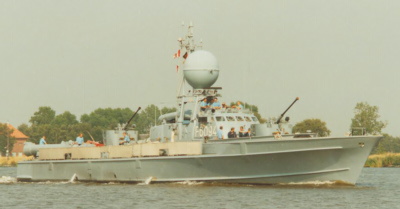 Die Geschichte des Schnellbootes Dachs: Der Stapellauf fand am 10.6.1961 bei der Fr. Lürssen-Werft in Bremen-Vegesack statt. Die Indienststellung am 25.9.1962. Das Boot bekam die Nato-Bezeichnung P 6094 und gehörte zum 7. Schnellbootgeschwader in Eckernförde. Nach der Ausserdienststellung am 6.12.1983 wurde es an die Türkei abgegeben. Ersetzt wurde es durch S 77, ein Raketen-Schnellboot vom Typ143a mit der Bezeichnung P 6127, das aus Traditionsgründen den Zusatznamen Dachs erhielt. Im wesentlichen entsprachen die Boote dieser Typ-Klasse dem Basis-Entwurf der Jaguar-Klasse (Typ 140), die als erste neue Generation nach dem Krieg entworfen und in Dienst gestellt wurden. Es wurde in Komposit-Bauweise hergestellt. Über den Spanten aus Aluminium lag die Außenhaut aus 3-lagigem Diagonalkraweel d.h. 3 Lagen Holzplanken, die in unterschiedliche Richtungen laufen und miteinander verleimt sind. Der Rumpf hatte 11 wasserdichte Abteilungen, so daß auch bei einer Beschädigung des Schiffskörpers die Schwimmfähigkeit erhalten blieb. Die Maschinenanlage bestand aus 4 Dieselmotoren von Mercedes-Benz zu je 3.000 PS, die auf vier in einer Ebene liegende Schrauben wirkten. Damit konnte das Boot eine Höchstgeschwindigkeit von 42 Knoten (38 Knoten nach dem Umbau) erreichen. Vor dem Umbau wichen sie optisch lediglich durch die etwas andere Brückenform von der Klasse 140/141 ab. Die Bewaffnung bestand aus zwei 40-mm-Bofors-Geschützen mit einer Reichweite von ca. 6 Seemeilen und vier 53,3 cm Torpedos mit einer Reichweite von ca. 3,6 Seemeilen. Insgesamt konnten sieben Torpedos an Bord genommen werden, vier in den Rohren und drei zum Nachladen auf dem Achterschiff. Alternativ konnten die achteren Torpedorohre aber auch entfernt und stattdessen zwischen 20 und 36 See-Minen an Bord genommen werden, so daß das Boot als schneller Minenleger verwendet werden konnte. Die Schnellboote dienten hauptsächlich zur Küstenverteidigung, konnten aber auch in küstennahen Gebieten zur Geleitsicherung und durch Mitführen von Seeminen und Wasserbomben zur U-Boot-Bekämpfung eingesetzt werden. Durch ihre niedrige Form und große Geschwindigkeit waren sie in Schußposition bevor sie vom Gegner richtig ausgemacht und erfaßt werden konnten. Ebenso schnell konnten sie sich nach Abschuß ihrer Torpedos wieder entfernen. Im Gegensatz zu anderen Kriegsschiffen wurden Schnellboote nicht einzeln, sondern immer im Verband eingesetzt. Ein solcher Einsatz dauerte normalerweise nicht länger als 2 Tage da die Ausrüstung und Unterkunftsmöglichkeiten sehr begrenzt waren. Da die Bewaffnung der Boote weitgehend dem technologischen Stand des Zweiten Weltkrieges entsprach, zeichnete sich angesichts des rüstungstechnischen Vorsprunges der Warschauer-Pakt-Staaten die Notwendigkeit der Nachrüstung ab. Dabei ging es auch darum, in Anbetracht des aktuellen Erhaltungszustandes sowie der ins Auge gefaßten Restverwendungsdauer einen finanziell tragbaren Kompromiß zu finden. Eine Umrüstung der Boote auf ein Flugkörper-System kam nicht in Frage, da die entsprechenden Versuche nicht wunschgemäß verlaufen waren. So entschied man sich für eine kleinere Lösung. In den Jahren 1969-1972 wurden die 10 Boote des 7. SG bei der Erbauerwerft Fr. Lürssen mit neuen, drahtgelenkten Torpedos vom Typ "Seal" ausgerüstet. Außerdem kam das damals neue M 20-Feuerleitsystem, welches sich unter dem Kugel-Radom verbarg, hinzu und verlieh den Booten fortan ihre markante und unverwechselbare Silhouette.